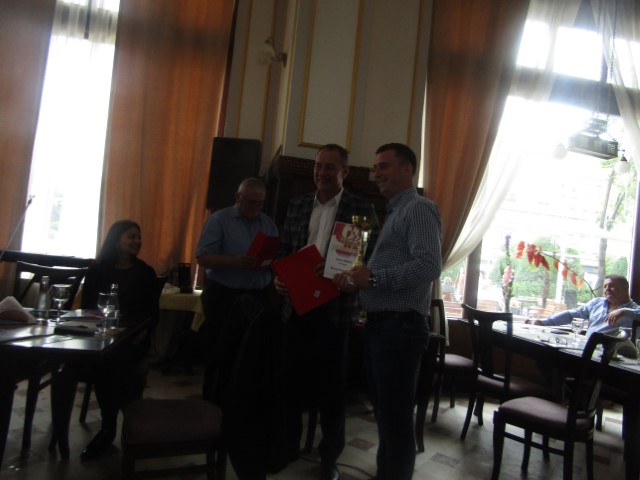 Premianții bănățeni și-au ridicat premiile din mâna patronului restaurantului Lloyd, Iavor Radovancovici, cel care le-a adus în țară de la Vârșeț, din Serbia.