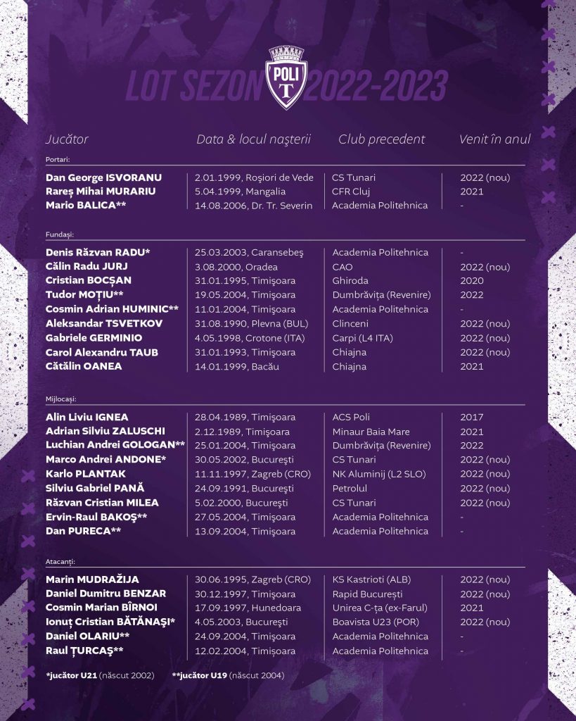 Seara s-a încheiat, bineînţeles, cu prezentarea lotului Politehnicii Timişoara pentru noua ediţie a Ligii 2, efectuată de la microfon de inegalabilul Florin Mihoc. Antrenorul principal Bogdan Andone a transmis cu această ocazie un mesaj către suporteri în legătură cu noii băieţi: „Au nevoie de susţinere, au nevoie de încredere, să crească şi să formăm o echipă pentru viitor, acesta este începutul şi vă rog din tot sufletul să fiţi alături de noi. Vă aşteptăm cu mare drag la teren şi vă promit că vom muri cu adversarii de gât pe teren!”. Desigur, nu au lipsit nici cântecele consacrate ale Peluzei Sud. Singurul absent din lot a fost Dan Pureca, din motive medicale.